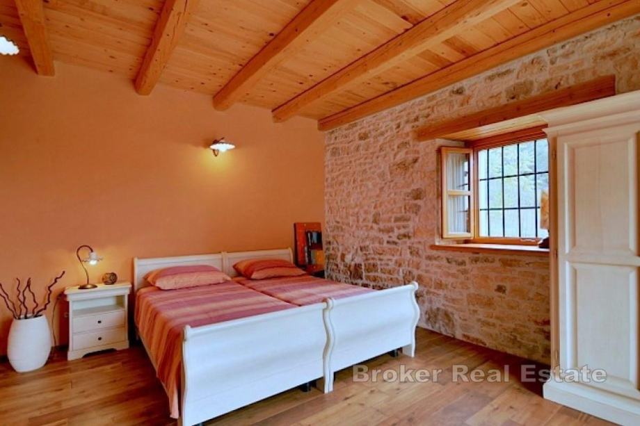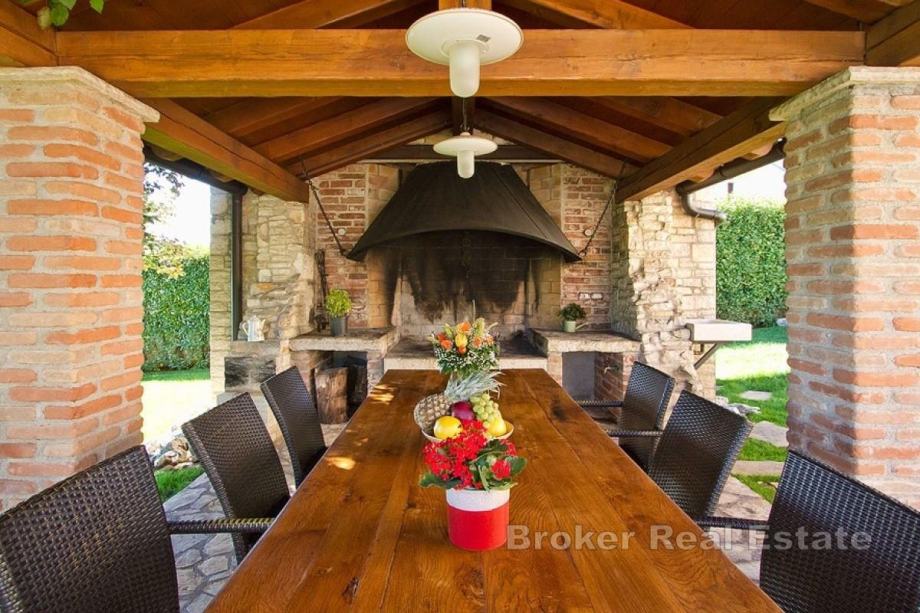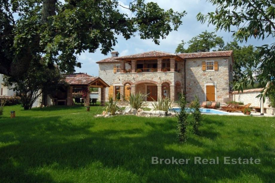Vila se nalazi 14 kilometara od Poreča i mora, u mirnom okruženju koje omogućuje privatnost i ugodan boravak. Riječ je o samostojećoj kamenoj kući ukupne površine oko 200 m², smještenoj na uređenoj parceli veličine 1000 m².