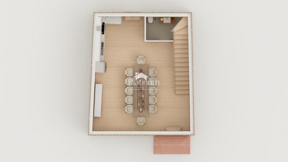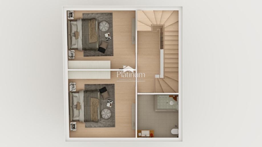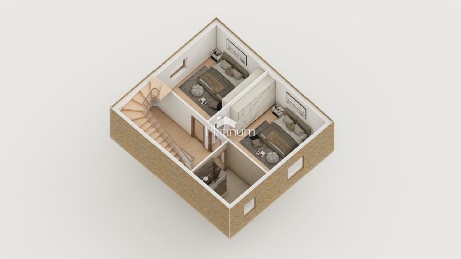 Prodaje se novoizgrađena kamena vila u nizu, stambene površine 84 m2 raspoređene na prizemlje, prvi i drugi kat. U prizemlju predviđen je dnevni boravak, kuhinja, blagovaona i wc dok je na prvom katu i u potkrovlju predviđeno ukupno 4 spavaćih soba i 2 kupatila.