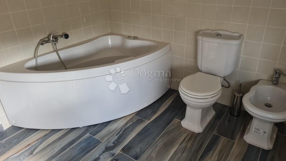 Na prvom katu su dvije spavaće sobe, svaka ima svoj WC jedina različitost je što u jednom WC-u tuš kabina, a u drugome kada. Sav laminat i keramika u kupaonicama je premium talijanske kvalitete.