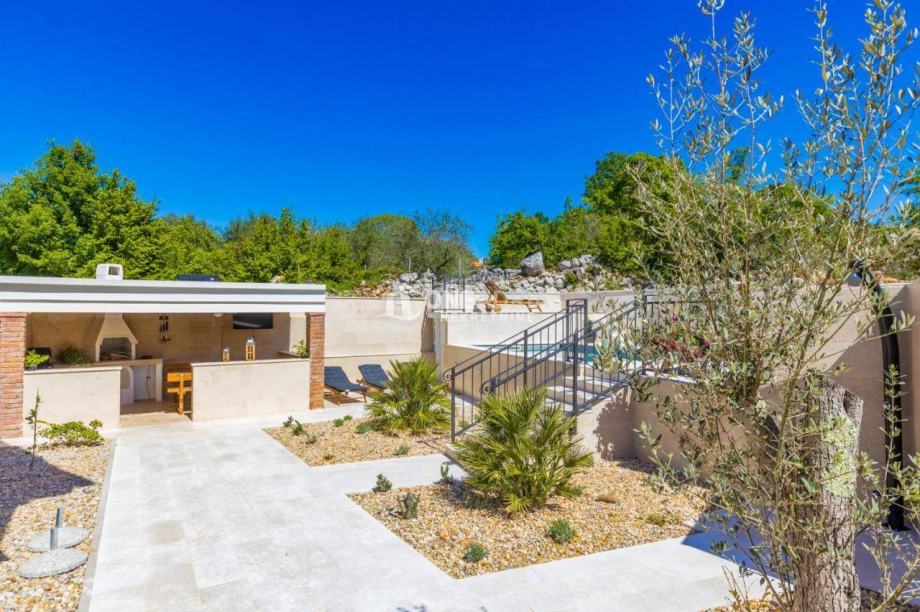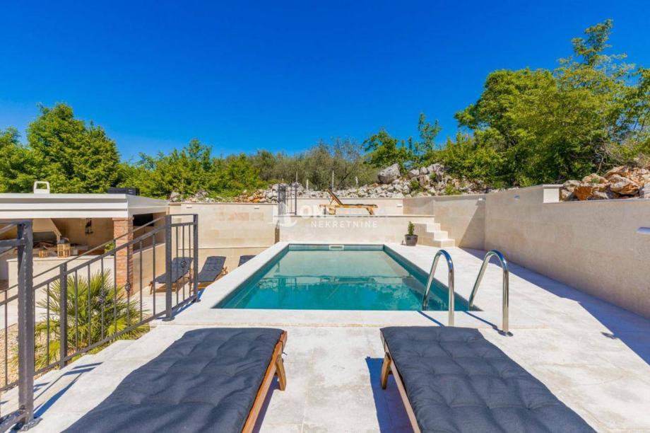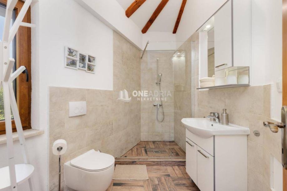 Posebnu vrijednost nekretnini daju dodatni sadržaji: natkrivena terasa idealna za boravak na otvorenom, ljetna kuhinja s roštiljem, vanjski toalet i tuš, kao i dva spremišta. U sklopu okućnice nalazi se grijani bazen sa slanom vodom, savršen za opuštanje tijekom toplijih mjeseci.