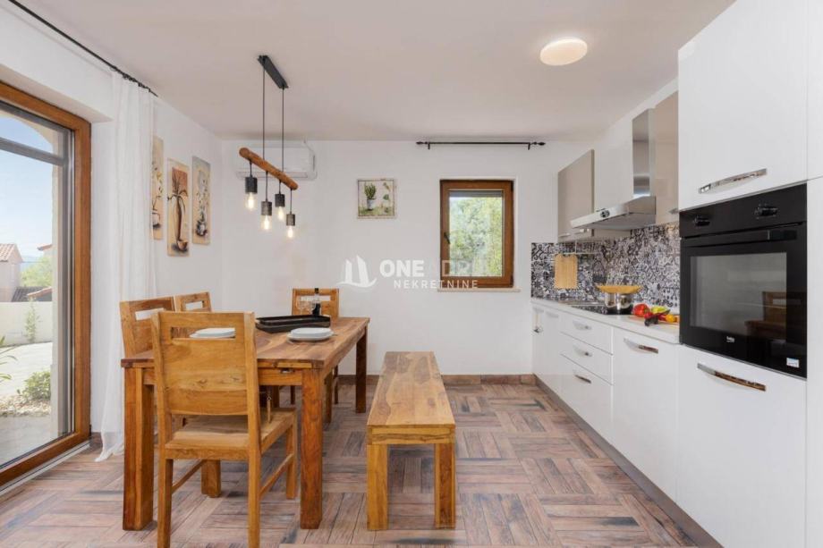 Na mirnoj lokaciji u blizini Malinske, prodaje se atraktivna samostojeća kuća površine 130 m², smještena na uređenoj i ograđenoj parceli od 445 m². Kuća se prostire na dvije etaže i nudi udoban i funkcionalan raspored prostorija.