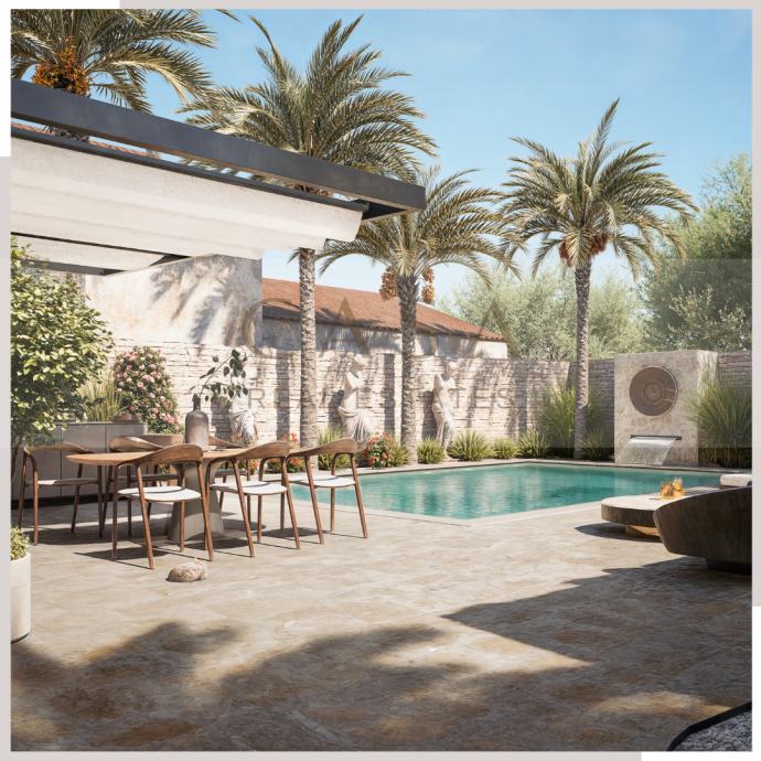 U varijanti privatne rezidencija ova vila bi bila u potpunosti luksuzna kombinirajući prirodne materijale kao što su kamen i drvo s modernim minimalističkim uređenjem. Sastojala bi se od velikog dnevnog boravka sa kuhinjom i blagovaonicom te kupanicom u prizemlju. Na prvom i drugom katu bi bile prostrane 4 en suite spavaće sobe. U dvorištu bi bio smješten prekrasan pravocrtan bazen pored kojeg bi bila smještena dodatna kuća od 40m2 jednako tako luksuznog dizajna kao i vila. Ostatak dvorišta bi krasila hortikultura u skladu sa prirodnom vegetacijom lokalnog kraja. Garažno mjesto bi također bilo omogućeno.
