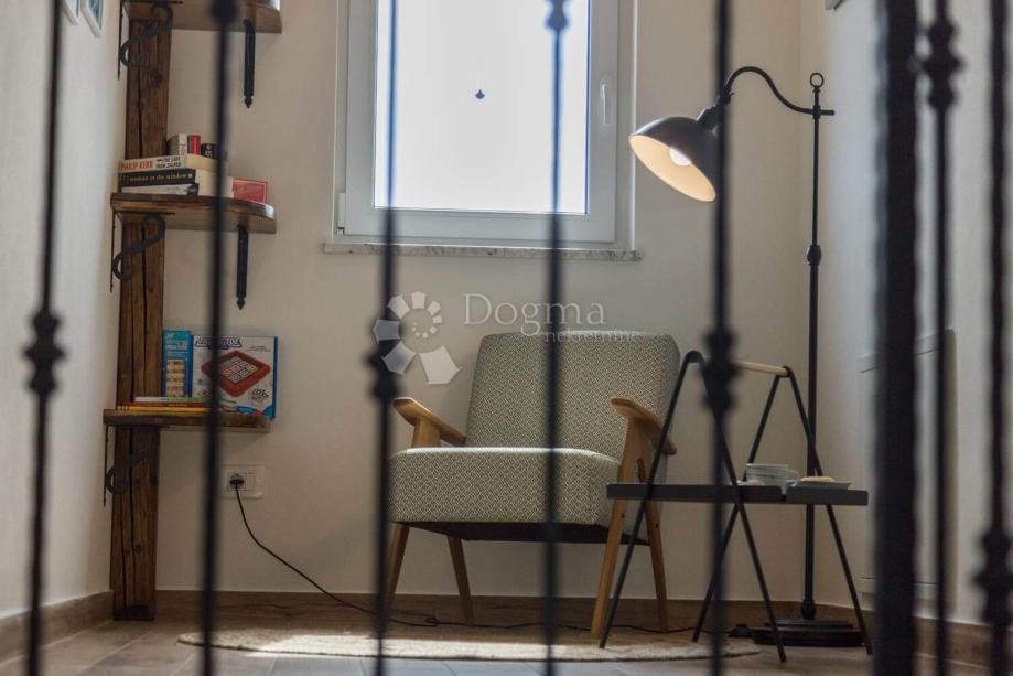 U prizemlju su smješteni dnevni boravak i kuhinja sa blagovaonicom otvorenog tipa, prostrana spavaća soba sa vlastitom kupaonicom, wc te spremište. U dnevnom boravku nalazi se Palazzetti kamin na drva koji osim grijanja pruža i prekrasan ugođaj.