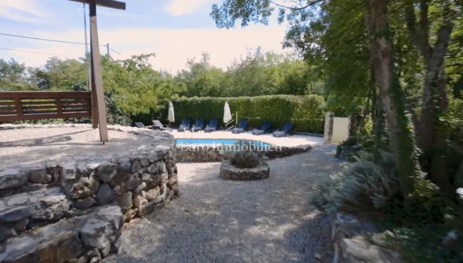 Na okućnici se nalazi ovalni bazen veličine cirka 7,5 m x 4 m sa sustavom za protustrujno plivanje, tuš, boćalište, konoba od 22 m2 i terasa s roštiljem.