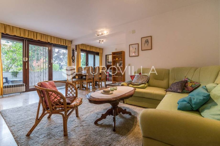 Kameniti stol, four-room apartment in a building with three apartments. The apartment is located on the ground floor. It consists of a kitchen with living room and dining room, two bedrooms and one smaller workroom, two bathrooms and a balcony. The apartment belongs to a yard with a garden with a...