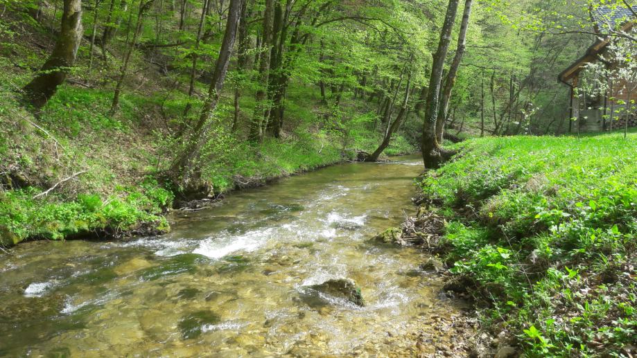 doživite nezaboravan osjećaj posjetom Parku prirode Žumberak i Samoborsko gorje, točnije posjetom dolini gorske rijeke Slapnice, toliko čistoj i bistroj da u njoj još uvijek obitava divlja pastrva i riječni rakovi. Osim izleta, fešte ili ciljanog odmora kod nas, ako putujete prema hrvatskom Jadranu, ova lokacija vam može biti usputna stanica za nezaboravan dodatni odmor, jer se nalazi na samo desetak kilometara od ceste Zagreb-Karlovac, a usporediva je sa Plitvičkim jezerima u malom. Uz umirujući žubor gorske rijeke, uz pjev rijetkih vrsta ptica, šarenilo bezbroj vrsta leptira i šumskog cvijeća, uz šetnje ili biciklističke vožnje uživajte u bezbroj izvora, mnoštvo slapova, od kojih se ističu 15-metarski obližnji vodopad Vranjak na samo 600 m i vodopad Brisalo na cca 4 km od uređenog zemljišta sa udobnom kamp kućicom za 4 osobe, terasom sa pogledom na 6 m udaljenu žuboreću rijeku, vanjskim roštiljem, ležaljkama, biciklima i sadržajima koje možete sami osmisliti. Zemljište ima svoj kolni ulaz, a kamp kućica je opremljena kupaonicom, kuhinjom, spavaonicom za dvije osobe i dnevnim boravkom koji se pretvara u ležaj za još dvije osobe.