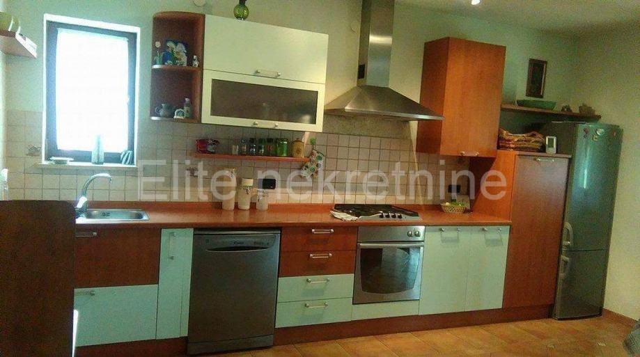 Kuća je prizemnica S potkrovljem gdje se prema želji i potrebi mogu napraviti dodatne sobe. Stan u prizemlju,veličine 150 m2, je kompletno namješten, sastoji se od hodnika, kuhinje s blagovaonom, dnenvim boravkom, dvije kupaone, tri spavaće sobe. Tri natkrivene terase i konoba.