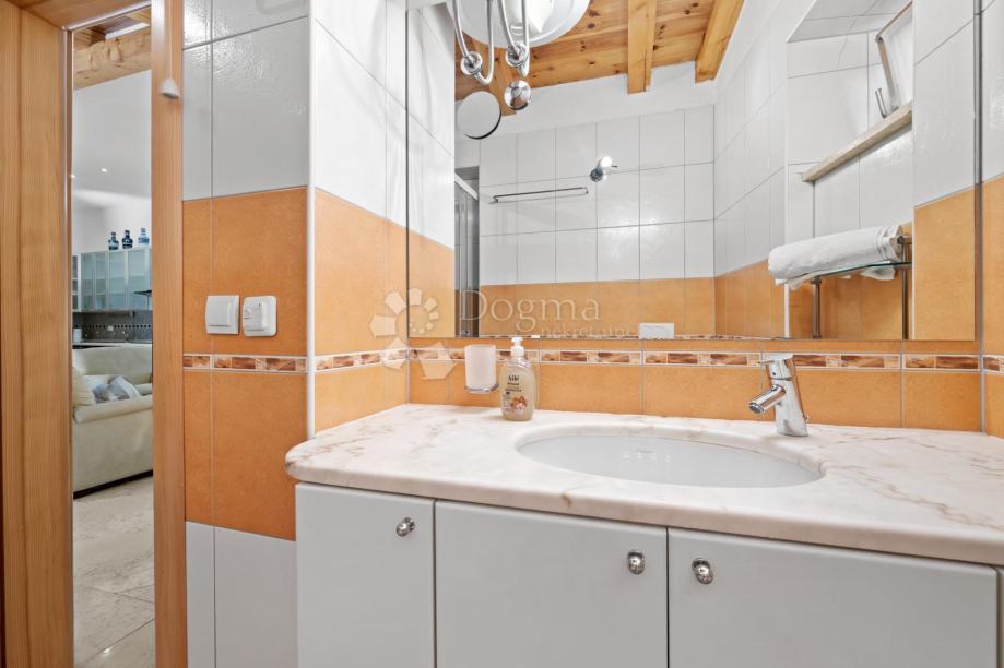 VEĆA KUĆA predstavlja stambeni objekat koji datira iz oko 1900. godine a kompletno je obnovljena 2012. godine. Originalni kameni zidovi širine su 60 cm, stolarija je drvena s autentičnim istarskim škurama a krov je prekriven kanalicama. Drvena međuspratna konstrukcija zamjenjena je armirano-betonskom čime je osigurana bolja toplotna i zvučna izolacija. Podovi su kameni, keramički i drveni. Namještaj je rađen po mjeri.