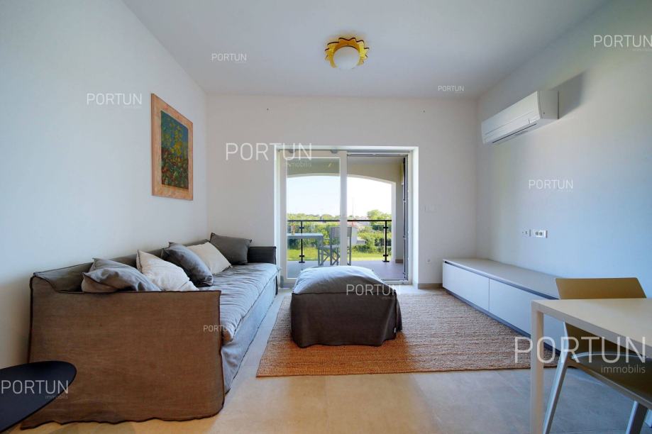 U ugodnom mjestu Kanfanar, udaljenom tek 20 minuta od Rovinja, na prodaju je nov stan u urbanoj vili na 2. katu, s prostranom terasom i osiguranim parkiralištem. Ova nekretnina iz 2022. godine ističe se kvalitetnom gradnjom, suvremenom opremom i izuzetnom energetskom učinkovitošću (E certifikat B). Smješten u mirnom okruženju s brzom povezanošću na autocestu, ovaj stan idealan je za stalno stanovanje ili odmor.Unutarnje dvokrake stepenice vode do ulaza u stan. Raspored uključuje dnevni boravak s kuhinjom i blagovaonicom, jednu spavaću sobu, kupaonicu s tušem, hodnik te loggiu. Svi pripadci su uredno upisani u zemljišne knjige, a osigurano je i parkiralište za jedan automobil.Zgrada u kojoj se nalazi stan građena je od blok opeke s kvalitetnom izolacijom i armiranobetonskom konstrukcijom. Krov je kosi, pokriven crijepom. Stan ima PVC stolariju s dvostrukim ostakljenjem, aluminijske grilje i protuprovalna vrata. Podovi su obloženi vrhunskim keramičkim pločicama i parketom. Stan je opremljen klimatizacijom i električnim radijatorima.Uz stan dolazi i spremište u podrumu. U cijenu je uključen sav namještaj i oprema, uključujući parlafon. Stan je odmah useljiv i prilagođen za ugodan život tijekom cijele godine. Svojim kvalitetama pruža izvrstan omjer cijene i vrijednosti, uz minimalne dodatne troškove.Kanfanar je mirno istarsko mjesto s osnovnom školom, apotekom, kafićima i dućanima na samo 100-150 m. Do plaže u Limskom zaljevu ima oko 10 km, dok je ulaz na autocestu udaljen 3 km, što omogućava brzu povezanost s Rovinjom, Pulom i ostatkom Istre. U blizini su i brojne znamenitosti poput ruševina srednjovjekovnog Dvigrada i jame Feštinsko kraljevstvo.Ako želite više informacija ili dogovoriti razgledavanje, slobodno nas kontaktirajte – rado ćemo vam pomoći!KLJUČNE OSOBINE✔ Izgrađeno 2022. g.✔ 1 Spavaća soba | 1 Kupaonica✔ 2. kat✔ Parkiralište za jedan automobil✔ Spremište✔ Etažni elaborat - Uporabna dozvola