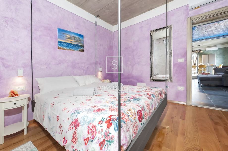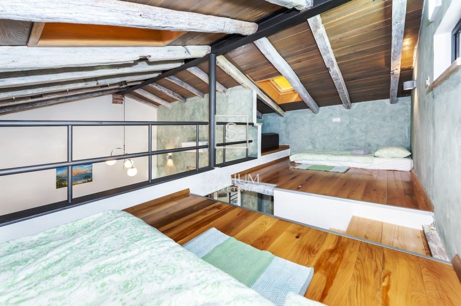 KANFANAR, u ponudu smo dobili prekrasnu kamenu kuću moderne arhitekture s tradicijskim elementima koja se smjestila na petnaestak minuta vožnje od grada Rovinja i rovinjskih plaža. Kuća se nalazi na parceli od 300 m2 koja je u potpunosti ograđena i na kojoj se nalaze četiri parkirna mjesta i bazen od 26 m2. U prizemlju se nalazi veliki dnevni boravak s termo kaminom, kuhinja s blagovaonicom, spavaća soba i kupaonica. Na prvom katu su dvije spavaće sobe, obje imaju mali balkon i svaka ima svoju kupaonicu, dok dio kata iznad dnevnog boravka ima veliku mrežu u kojoj možete boraviti. Jedna soba na prvom katu ima krovne prozore i galeriju koja se može koristiti za pomoćne ležajeve ili za odlaganje stvari. Grijanje je podno, plus centralni radijatori, a klima uređaji su postavljeni u svim prostorijama. Kuća također ima centralni usisni sustav, s otvorima u svim sobama, za jednostavno čišćenje. Stolarija je aluminijska, sa troslojnim staklom, za potpunu zvučnu i toplinsku izolaciju. Interijer je uređen sa stilom, od kojih su mnogi ručno rađeni (kameni umivaonici, željezne stepenice), dok sve sobe imaju drvene podove i talijansku keramiku.