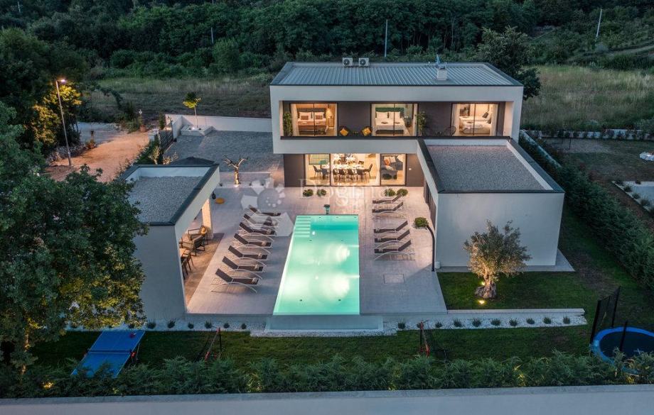 Ova predivna vila smještena u mirnom i luksuznom naselju u okolici Svetvinčeta pravi je primjer besprijekornog spoja modernog luksuza i prirodne ljepote. Površina kuće iznosi 308 m², dok okućnica od 1.136 m² nudi obilje prostora za uživanje u potpunoj privatnosti i tišini. Vila je smještena u očaravajućem okruženju, okružena šumom koja pruža potpunu intimnost i mir, dok istovremeno omogućava jednostavan pristup svim važnim sadržajima i prometnim vezama.