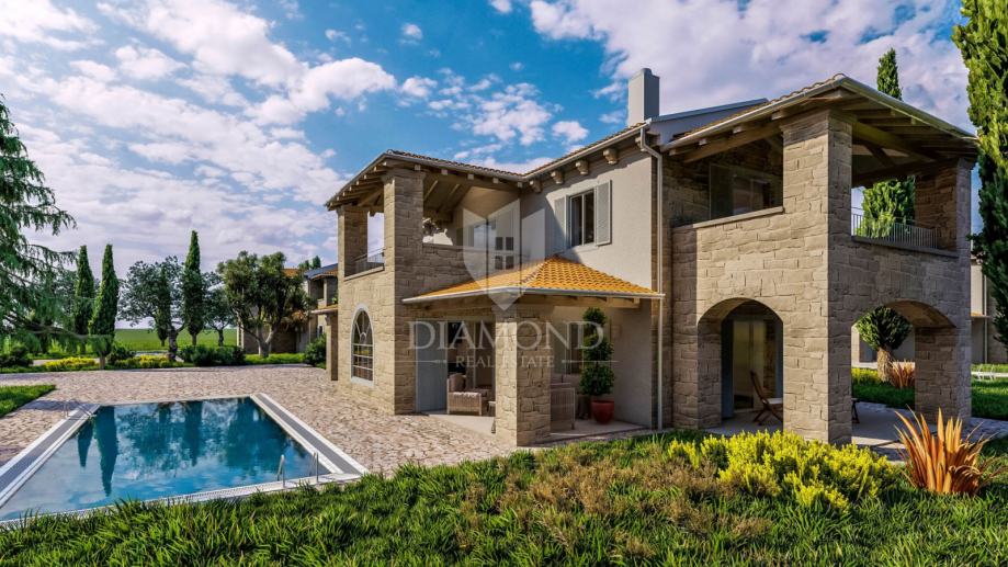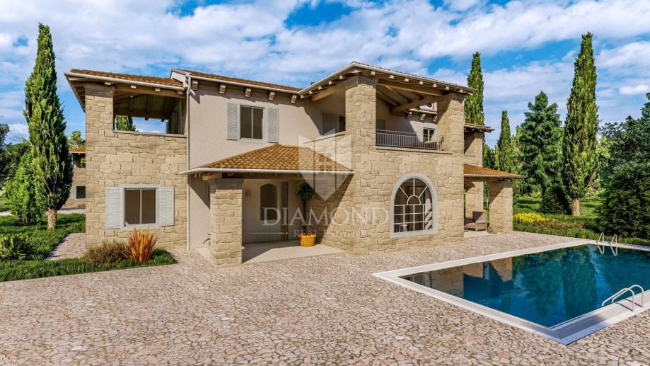 na samo dva kilometra od šarmantnog gradića Kanfanara u središnjoj Istri u manjem mjestu prodajmo ovu novu kuću čiji je izgled inspiriran autohtonom starogradnjom kamenih kuća. Centralna pozicija u Istri omogućila mu je nesmetani razvoj kao turističko središte čija se ponuda smještaja većinski sastoji od luksuznih kuća za odmor dok veoma dobra prometna povezanost omogućava da se za veoma kratko vrijeme može doći do Rovinja na 18km ili Poreča na 30km kao i Pule na 35km udaljenosti - što znači da je izbor turističke ponude širok i dostupan dok i sam gradić Kanfanar obiluje događajima tokom sezone.