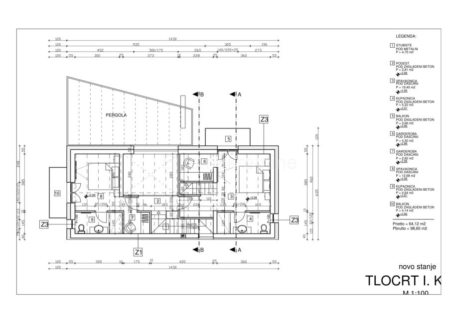 Na katu se nalaze 2 spavaće sobe, svaka sa svojojm kupaonicom, garderobom te balkonom.