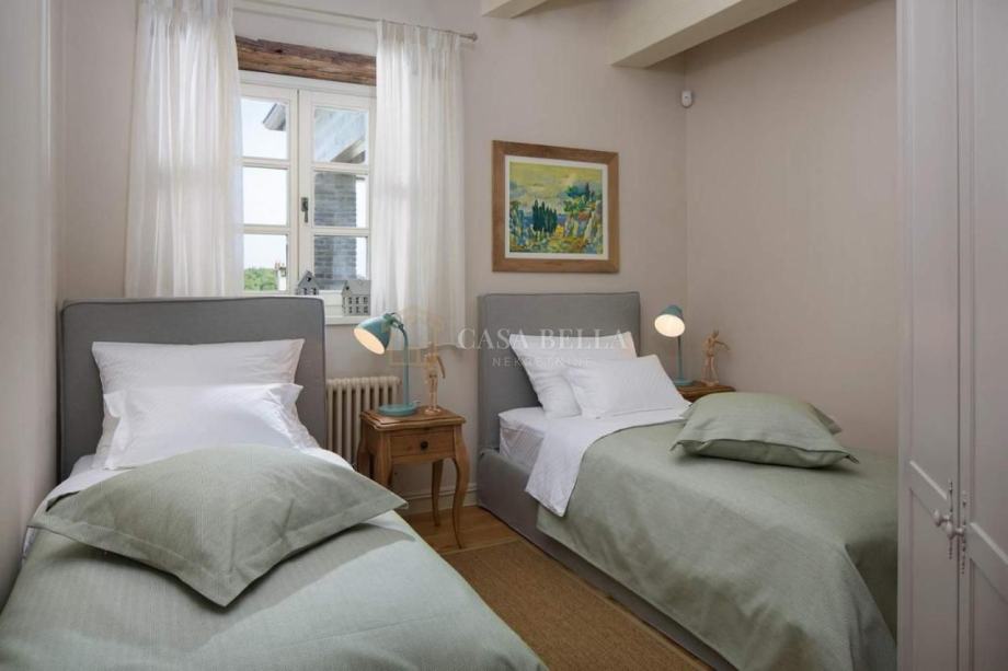 Na katu se nalaze četiri spavaće sobe sa kupaonicama sa zajedničkim izlazom na terasu sa kojih se pruža prekrasan pogled na zelenilo i more.