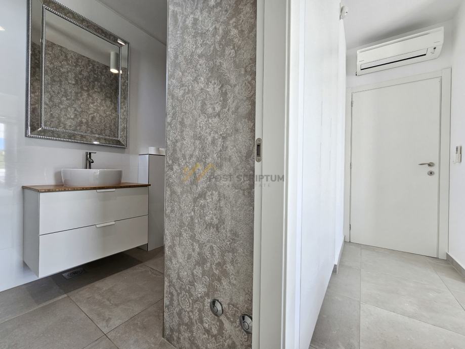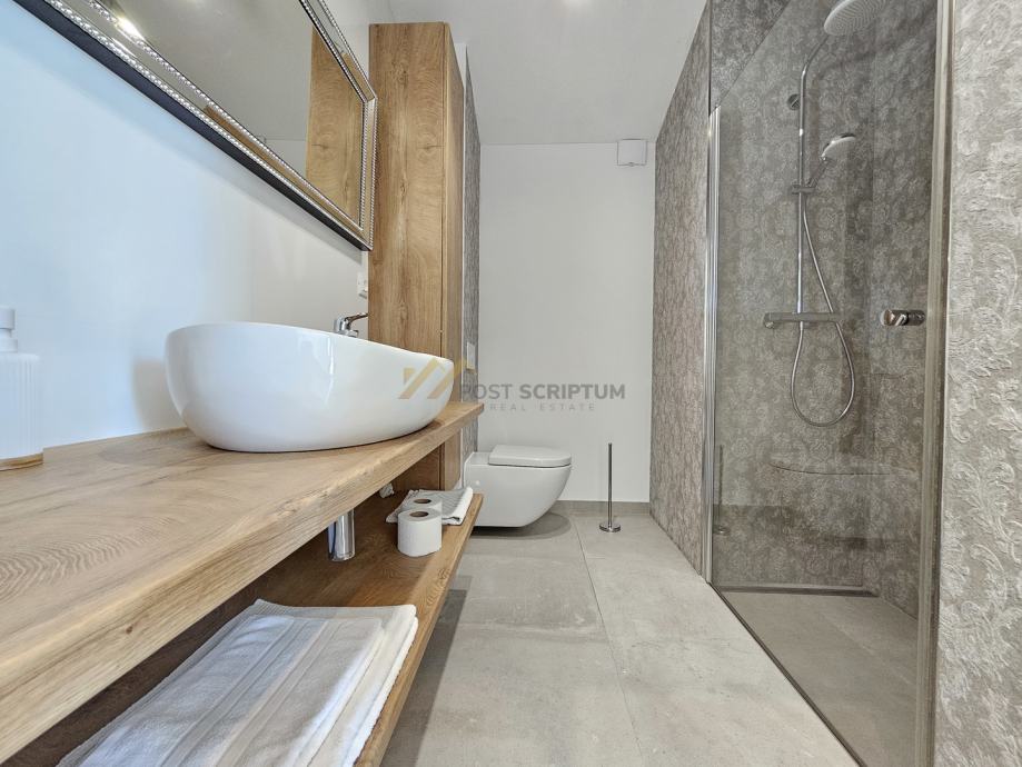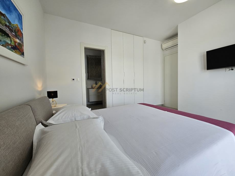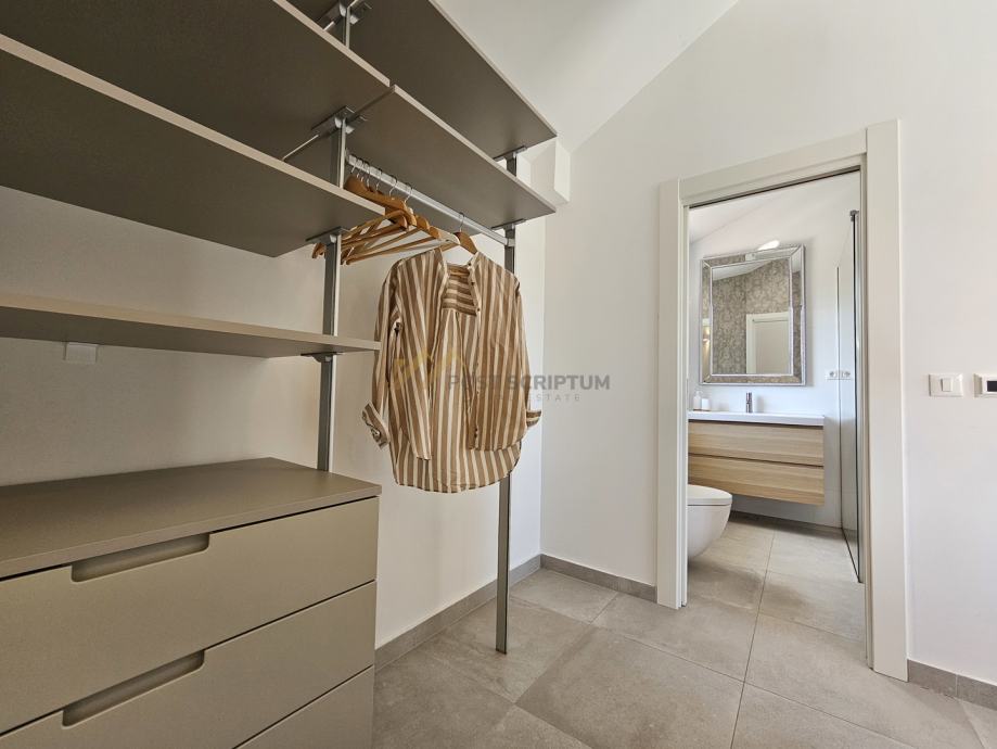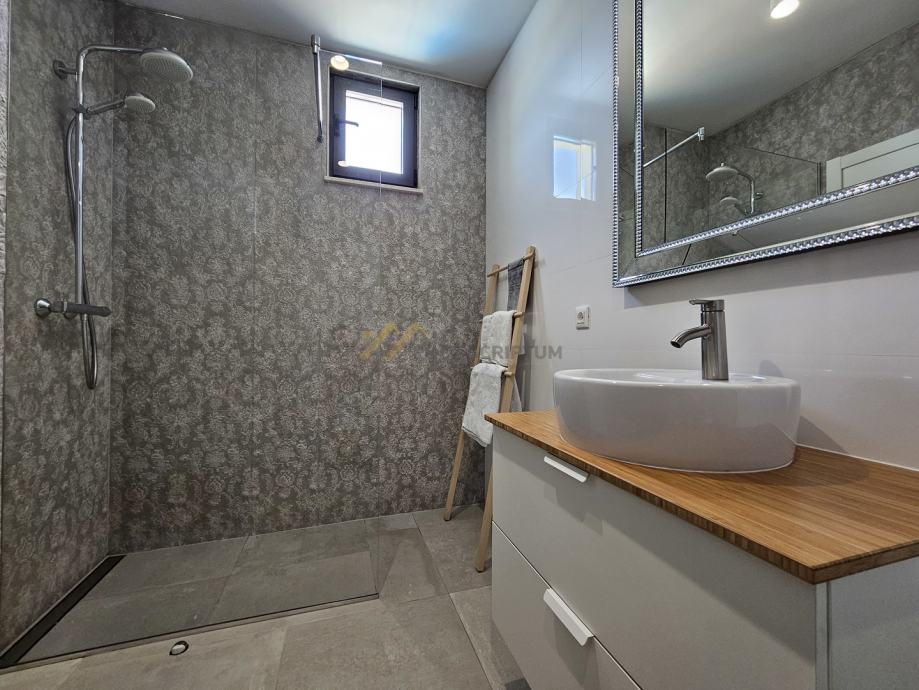 Na drugoj etaži nalaze se predsoblje, dvije spavaće sobe s vlastitim kupaonicama i terasa s predivnim pogledom.