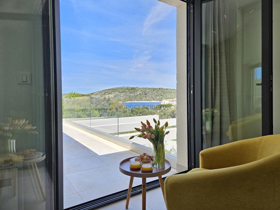 Na prostranu terasu s otvorenim pogledom izlazi se iz dnevnog dijela i spavaće sobe.