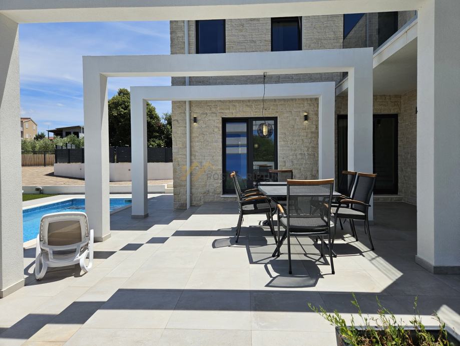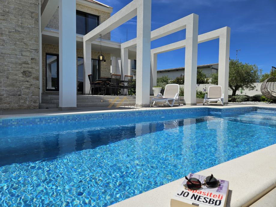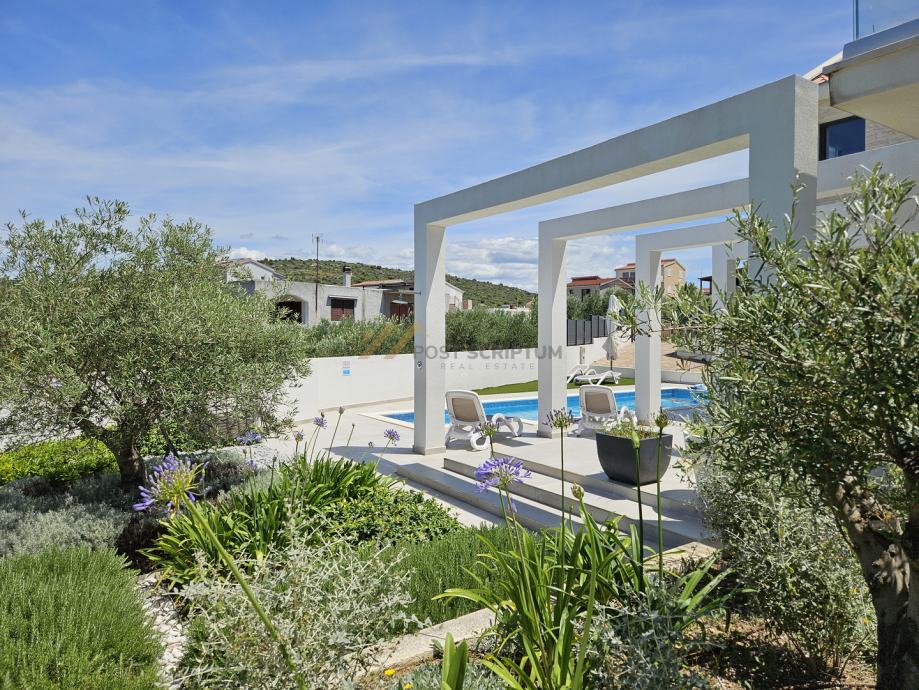 Krase je mediteranska arhitektura, prostran interijer, vanjski bazen i velika okućnica s tri parking mjesta.