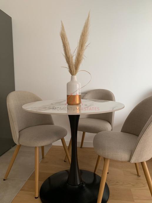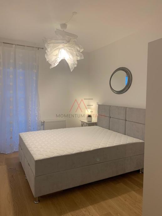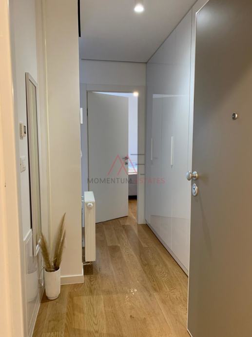 Iznajmljuje se moderno uređan stan u novogradnji na uvijek traženoj lokaciji. Stan se nalazi u novogradnji, na četvrtom katu zgrade, i sastoji se od kuhinje s dnevnim boravkom, kupaonice, spavaće sobe, prostrane lođe s predivnim pogledom na okolinu i more. Stanu pripada parkirno mjesto u garaži. Moderno uređen i opremljen svim potrebnim uređajima. Režije po potrošnji. Iznajmljuje se dugoročno.