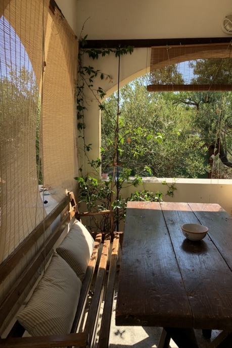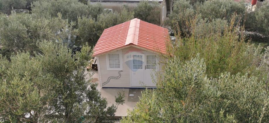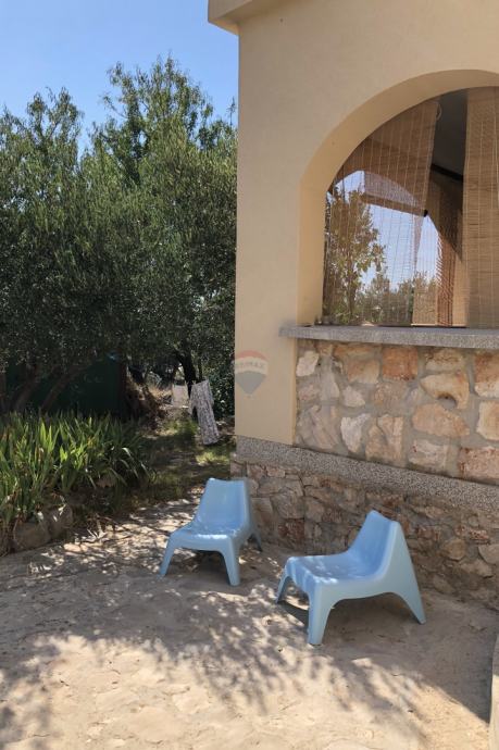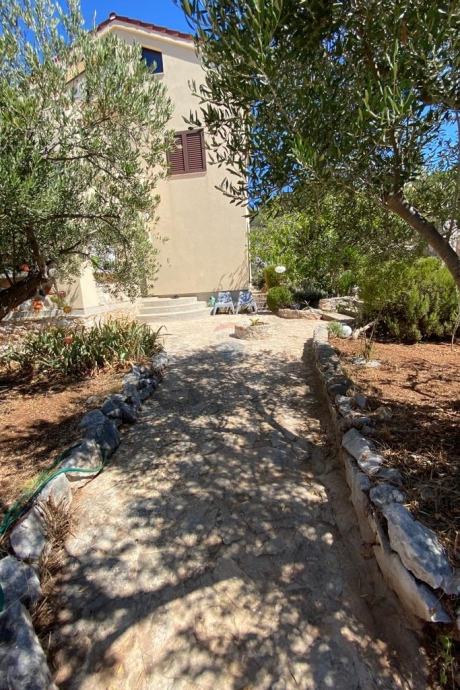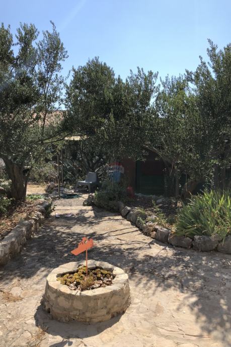Okućnica je ograđena i uređena s vrtom punim mediteranskog bilja i 7 stabala maslina.
