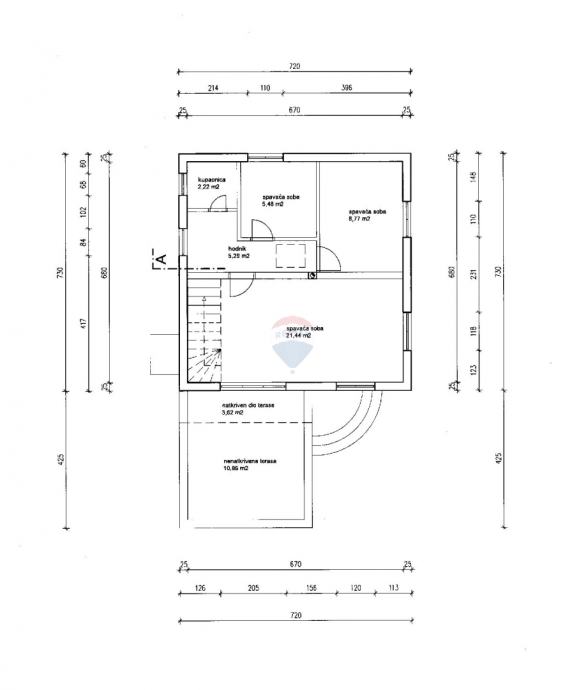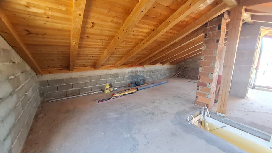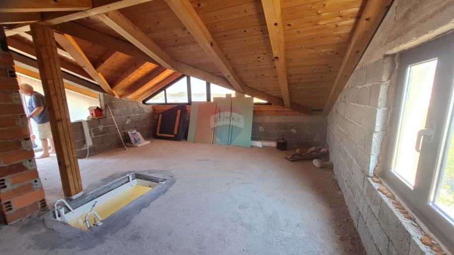 Potkrovlje je izolirano i spremno za opremanje sa prekrasnim pogledom na selo kaprije i more, te ima izlaz na terasu površine 4 m2.