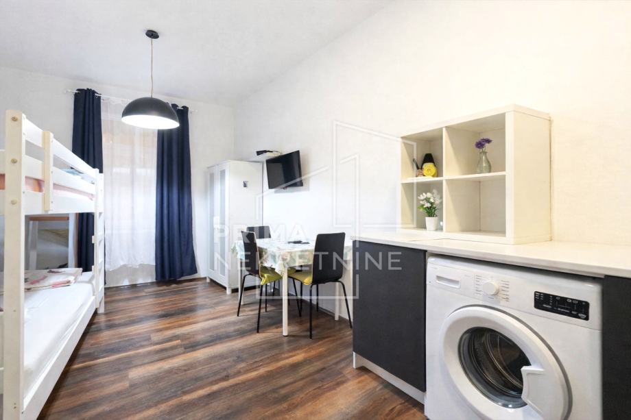 U ponudi je dvosoban stan površine 24,51 m2 smješten u prizemlju manje stambene zgrade koja se sastoji od ukupno dva kata na Kaptolu. Stan je u naravi funkcionalno podijeljen na dva potpuno odvojena studio apartmana površina približno 12 m2 i 15 m2, svaki s vlastitim zasebnim ulazom, što ovu nekretninu čini izuzetno atraktivnom kao investiciju za najam.