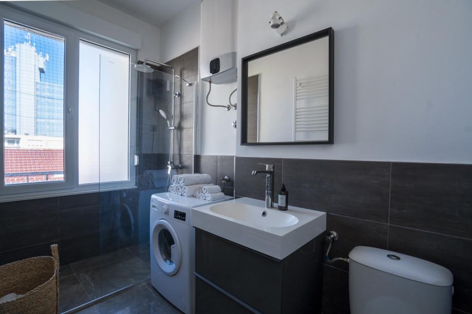 Od aparata tu su perilica za suđe, veš mašina, indukcija s kuhinjskom napom, veliki frižider, televizor, te novi klima uređaja. Grijanje na gradsku toplanu.