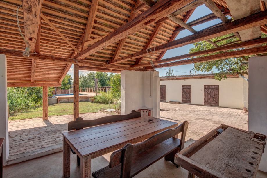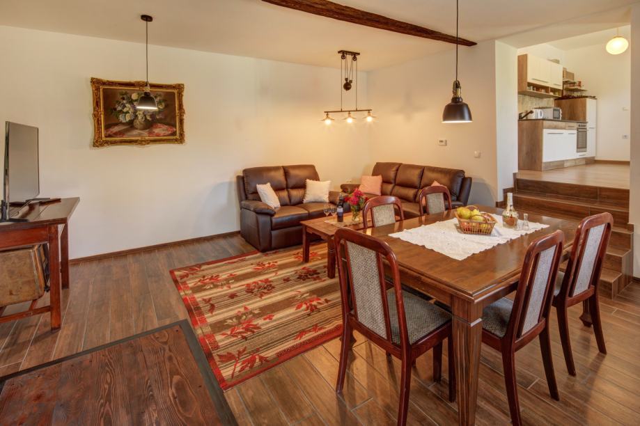 Prodajemo luksuzni apartman za smještaj do 10 osoba, nalazi se u centru Karanca, slikovitog mjesta u Baranji , sadrži tri prostrane sobe, dnevni boravak, potpuno opremljena kuhinja, dvije kupaonice i WC, vanjski roštilj sa sjenicom, vanjski bazen.Istinski doživljaj sela približit će vam uređenje u tradicionalnom rustikalnom stilu s elementima modernog. Stara austrougarska gradnja masivnih zidova ljeti pruža ugodnu svježinu, a zimi izuzetnu toplinu boravka, Površina zemljišta je 2400 m2.