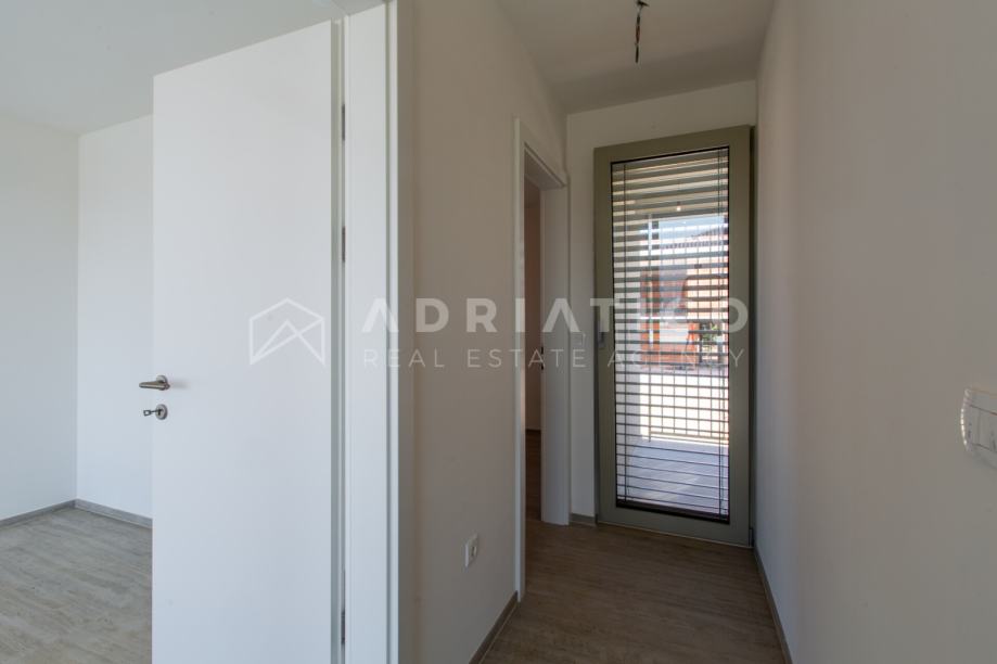 Prodaje se moderan stan u novogradnji, smješten svega 300 metara od mora i uređene plaže. Sa 108 m² stambene površine, stan nudi iznimno funkcionalan raspored koji uključuje četiri prostrane spavaće sobe, svijetao dnevni boravak i dvije kupaone. Posebnu vrijednost ovoj nekretnini daje impresivna krovna terasa od 112,5 m² s koje se pruža prekrasan, otvoren pogled na more, idealan za opuštanje, druženja i uživanje tijekom cijele godine.