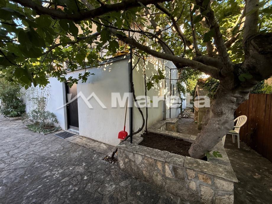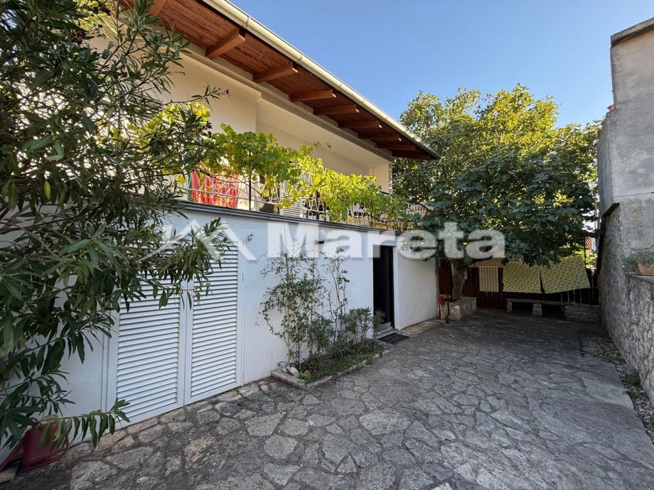 Uređeno i ograđeno dvorište površine 128 m2 ima mjesta za parkiranje dva vozila a iz kuće se nalazi vanjski roštilj u hladovini.