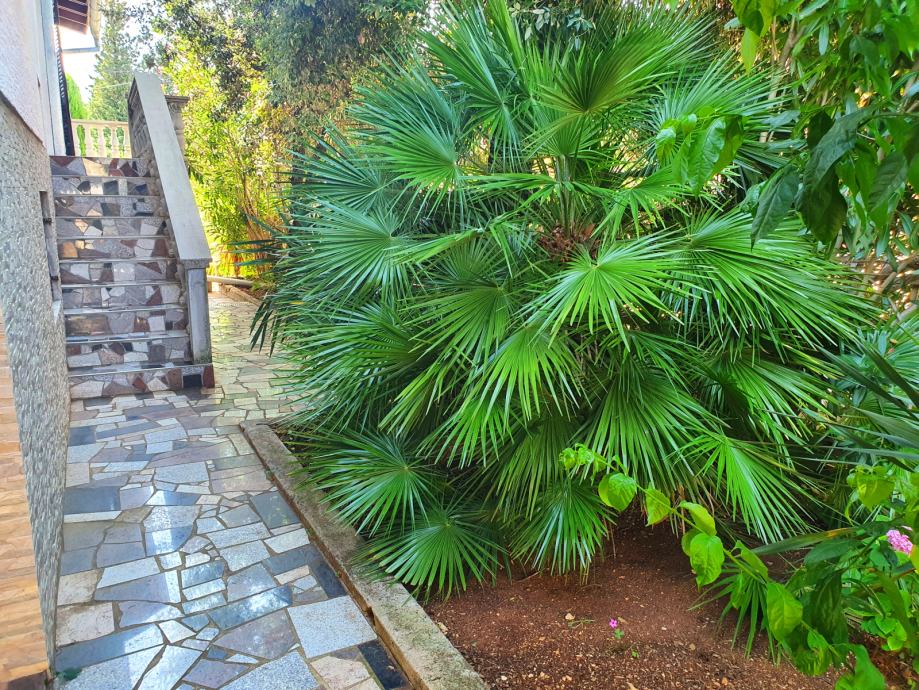 Kuća se nalazi na parceli od 300 m2. Potpuno namješteno, uređena okućnica s bogatom hortikulturom. Klima uređaji. 5 parkirnih mjesta izvan + garaža.