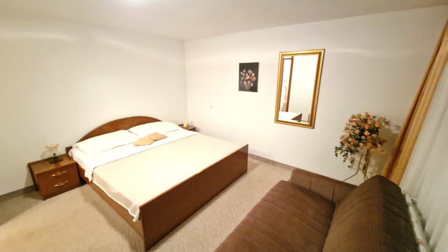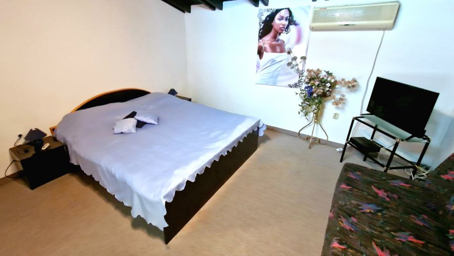U prizemlju se nalazi apartman (1 spavaća soba, kuhinja, terasa), 2 velika podruma i garaža.