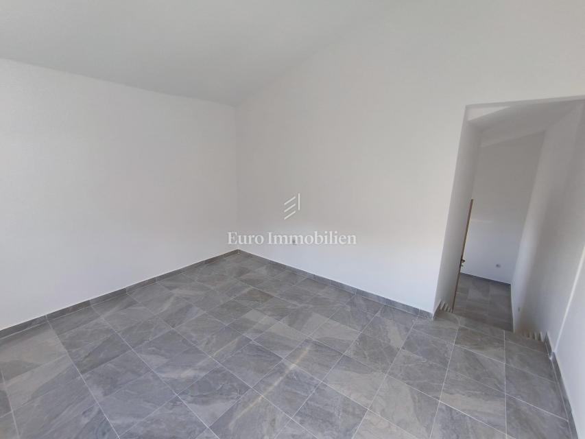 Stan se sastoji od dvije stambene jedinice: 2S stana od 48,22 m² i studio apartmana od 12,60 m². Obje stambene jedinice dijele prostrani balkon, a s terase i balkona pruža se otvoreni pogled na more. Stan je renoviran 2023. godine. Stanu pripada parkirno mjesto u sklopu okućnice. Dokumentacija je uredna.