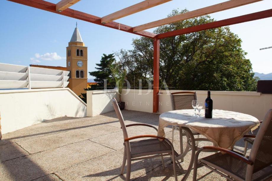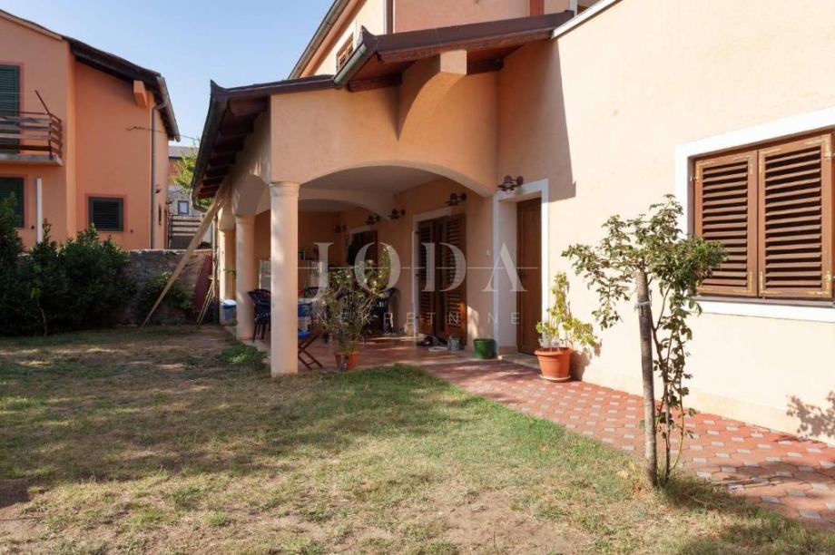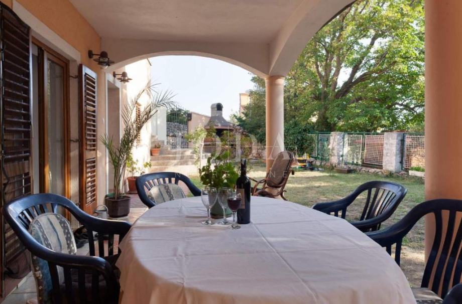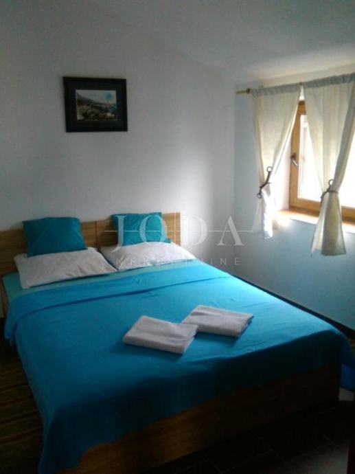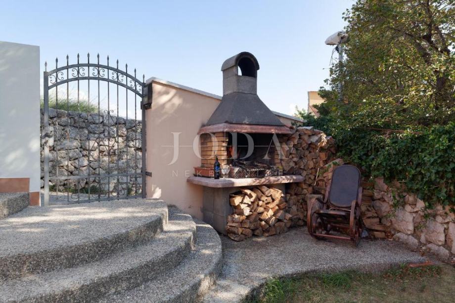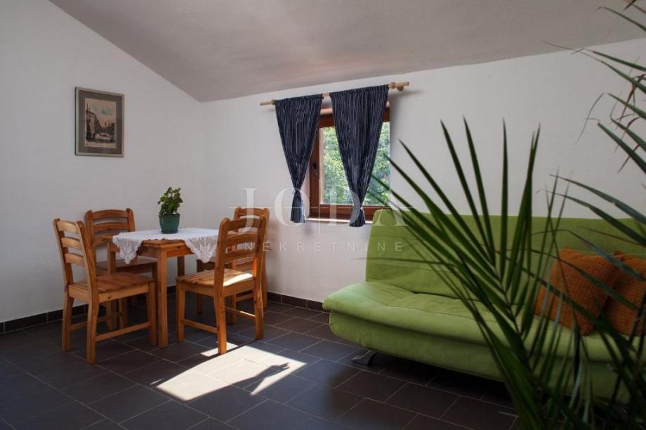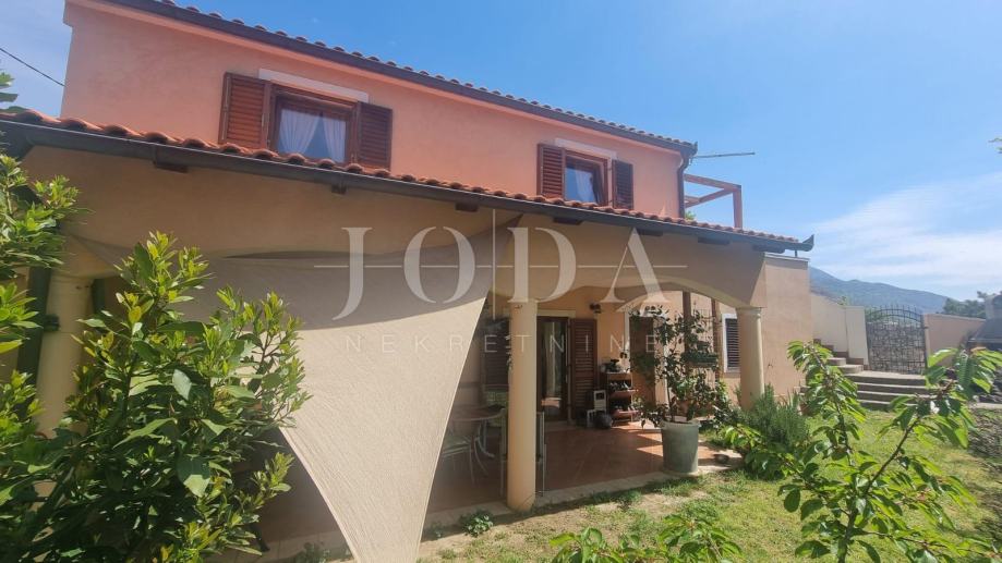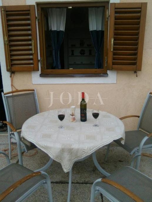Na odličnoj lokaciji 50 metara od gradske plaže i isto toliko od centra mjesta ,na kraju slijepe ulice smještena je ova samostojeća kuća sa dva dvosobna apartmana.