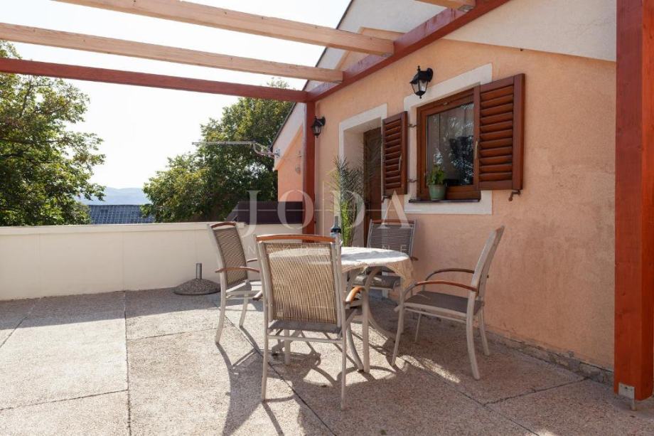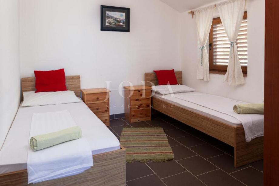 Kompletno su odvojeni ulazi u apartmane s tim da prizemlje ima lijepu natkrivenu terasa i travnjak,dok je na katu velika terasa sa pogledom na more.