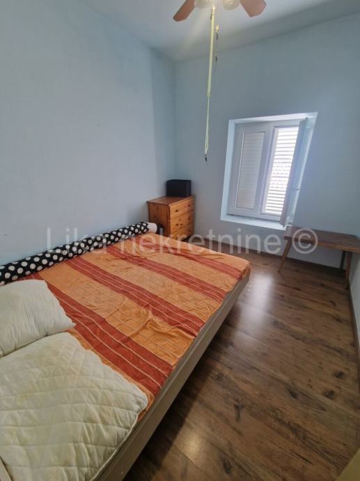 KARLOBAG - centar - Uređena i useljivа dvojna kuća površine 150 m² smještena je u samom centru Karlobaga, tek 50 metara od gradske jezgre i svega 200 metara od plaže. Kuća nudi 5 prostorija, uključujući 3 udobne spavaće sobe na katu, te dolazi potpuno namještena s opremljenom kuhinjom i dnevnim boravkom u prizemlju, kao i kupatilom sa wc-om i velikim hodnikom – idealno za trenutačan useljenje ili iznajmljivanje. Grijanje je osigurano klimatizacijskim uređajima, a mirna lokacija jamči kvalitetan odmor i svakodnevni komfor. U neposrednoj blizini nalaze se dućani, škola i autobusna stanica, dok je javni parking dostupan u blizini ( ljeti se plaća po povlaštenoj cijeni ). Savršena prilika za stalni dom ili investiciju na atraktivnoj jadranskoj destinaciji.