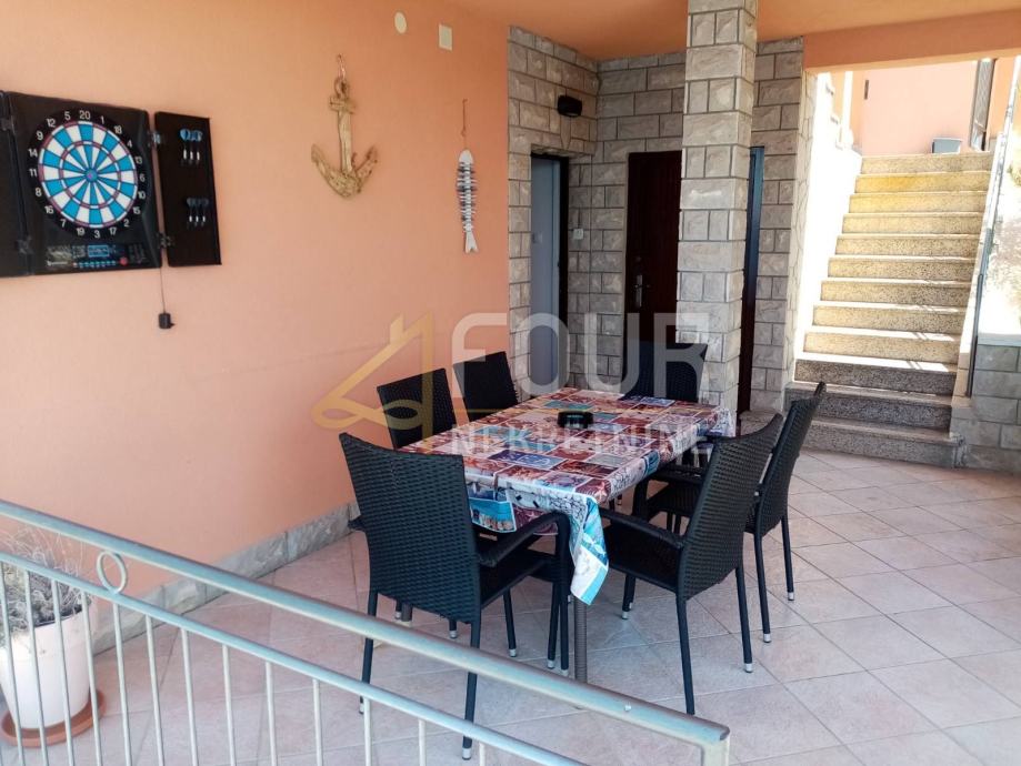 Na katu je druga stambena jedinica sa tri spavaće sobe, kupaonicom, kuhinjom i dnevnog boravka iz kojeg se izlazi na balkon s kojeg se pruža predivan pogled na more i otoke.