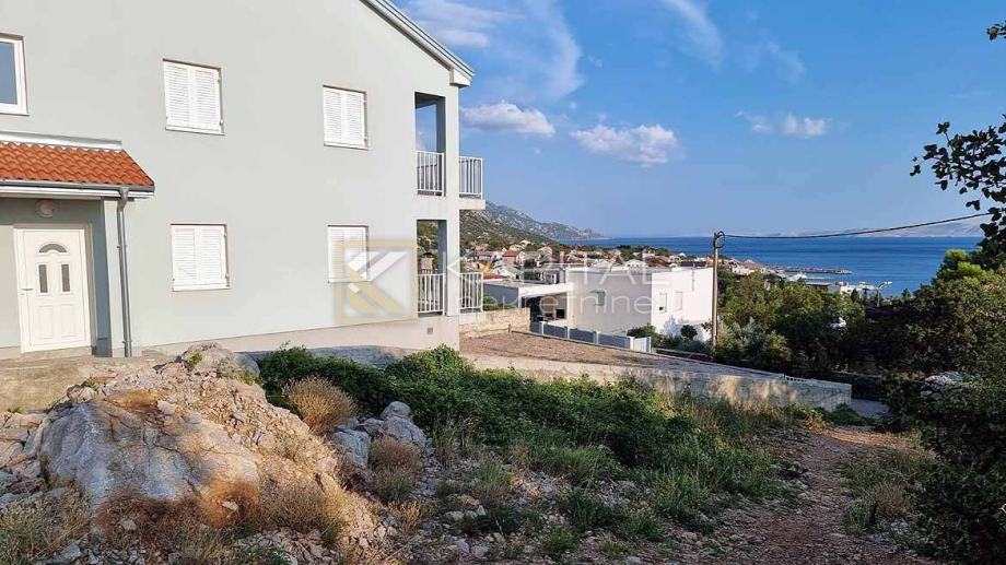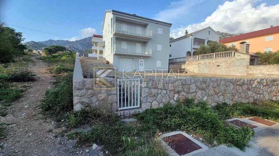 Kuća na mirnoj i dobro pristupačnoj poziciji iznad hotela Zagreb. Useljena 2018 g. ali vrlo malo korištena što je i razlog prodaje. U suterenu garaža 20 m2 i garsonijera od 30 m2. U visokom prizemlju i na katu su dva identična stana povezana unutarnjim stubištem. Stanovi su vrlo konforni dvosobni sa dnevnim boravkom i velikim terasama od 12 m2. Jadan stan kompletno namješten i opremljen dok su ostali potpuno uređeni samo fali namještaj. Od radova je preostalo završenje okoliša. Za sve informacije nazovite 098/257-020