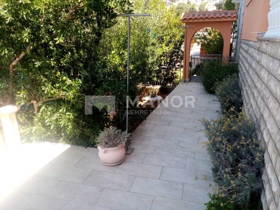 Kuća ima pripadajuću okućnicu, u sklopu koje se nalazi jacuzzi i manji bazen.