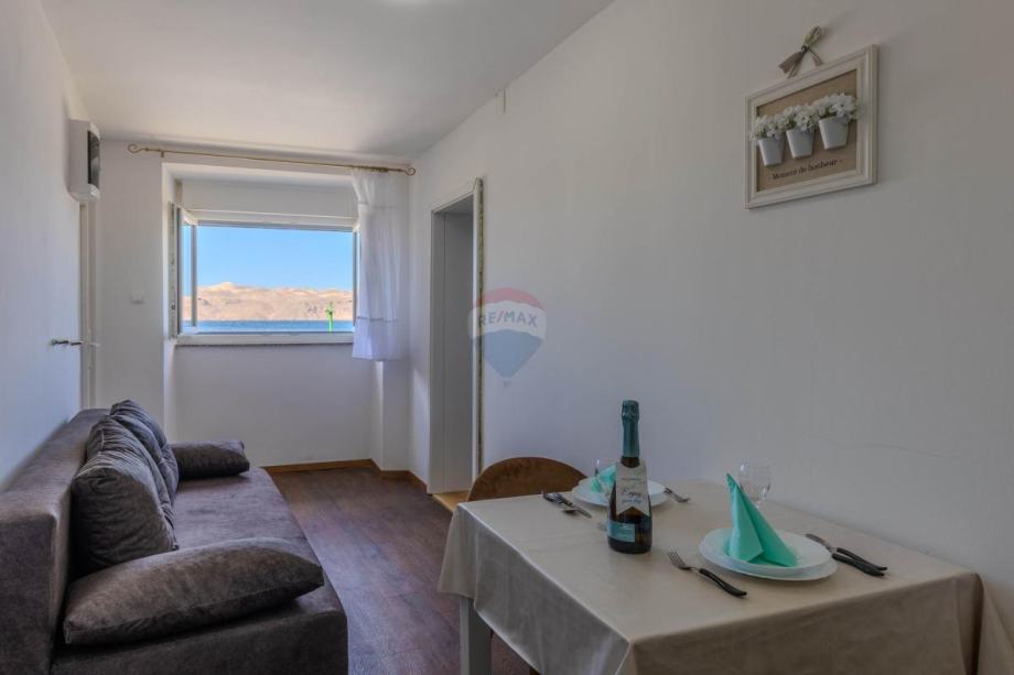RE/MAX Centar nekretnina predstavlja jednosoban stan prvi red do mora, smješten u samom centru Karlobaga, ukupne površine 34 m².