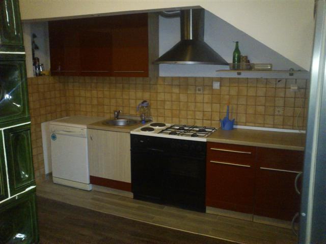 KARLOVAC, DREŽNIK gradska četvrt, neposredna blizina škole i svih institucija pješice. Prizemnica sa dva ulaza i ulaz za vozila u ograđeno dvorište. Trosobni stan na 2 etaže + manja terasa i natkrivena dvorišna zgrada i dvorište. Novo postavljene sve instalacije, izolacija potkrovlja i postava svih podnih i zidnih obloga 2014. Godina. Gradski vodovod i kanalizacija. Odmah useljivo. Tri spavaće sobe i WC u potkrovlju. Jedna spavaća sa bračnim ležajem ostale samostalno ili po želji. U prizemlju dnevni boravak, blagovaona, kuhinja, garderobno predsoblje i kupaona sa tušom. Kupaona opremljena, sve novo i uređeno. Grijanje na kruta goriva – kalijeva peć u prizemlju. Spavaće sobe u potkrovlju toplinski izolirane, grijanje struja, Izuzetno mala potrošnja i mali troškovi režija općenito. U sobama ležajevi i garderobni ormari. Kuhinja opremljene sa svim aparatima, peć plin na bocu i pećnica kombinirano. Perilica za suđe, frižider mikrovalna itd. Dnevni boravak i blagovaona namješteni + TV, telefon, Internet. Korištenje natkrivene terase kod ulaza u kuću sa dvorišta. Glavni ulaz je s ulične strane sa parkinga. Izuzev dvorišta moguć parking i ispred kuće. Na terasi je niša za odmor sa pomoćnom prostorijom. Natkrivena dvorišna zgrada bez vrata može poslužiti kao prostor za boravak, rekreaciju, partiye, budući da ima ugrađeni – kamin sa roštiljom i pekom ili kao spremište, te u krajnjem slučaju sasvim sigurna i suha garaža. Najmoprimac sklapa ugovor, daje polog i može useliti. Vlasnik – najmodavac je obveznik plaćanja poreza na najam. IZNAJMLJENO U 2015 GODINI. TRENUTNO U KUĆI ŽIVI PODSTANAR