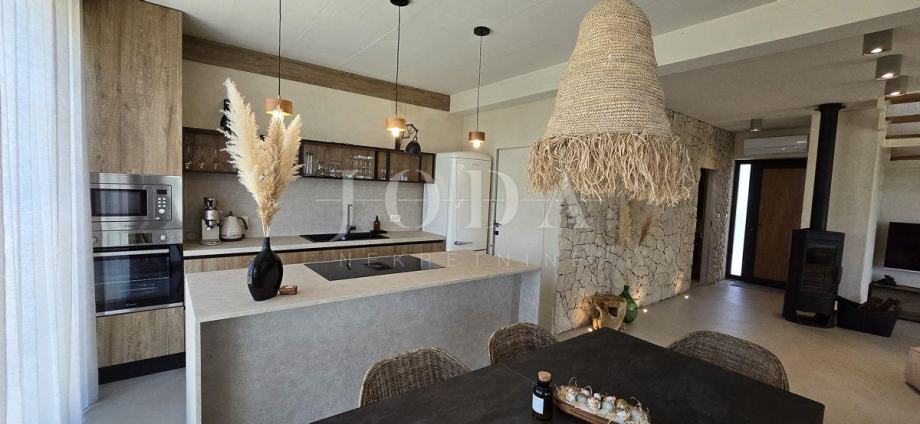 U prizemlju nalazimo moderno uređen interijer u open plan kuhinji i dnevnom boravku s izlazom na natkrivenu terasu.