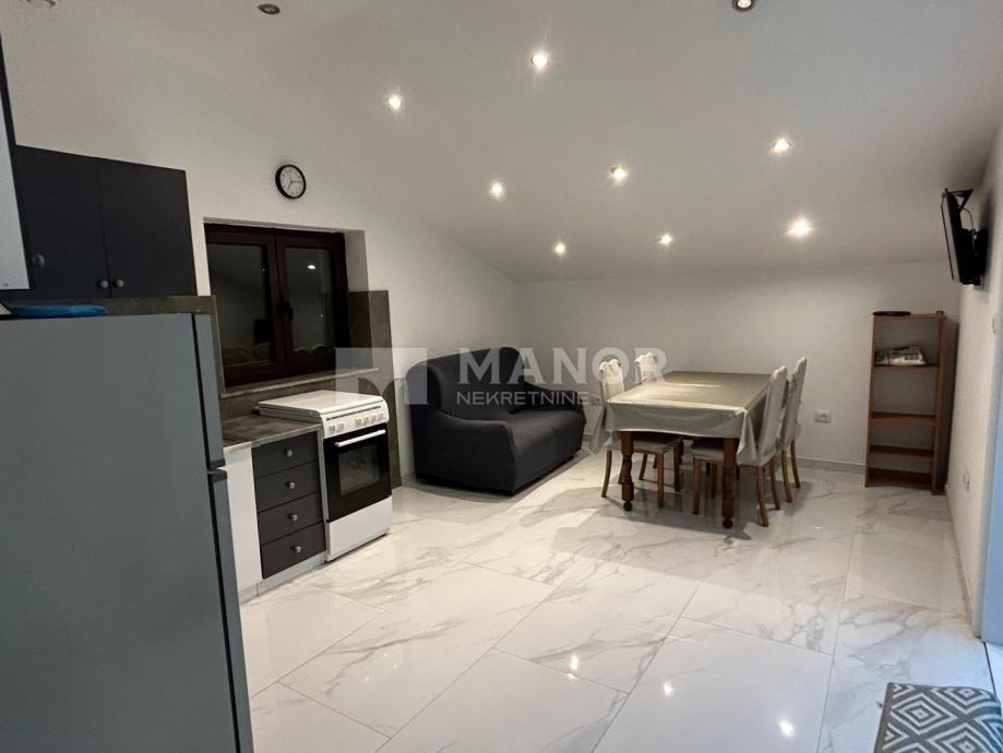 Dnevni boravak, kuhinja i blagovaonica spojeni su u otvoreni prostor. Kuhinja je potpuno opremljena: ugrađeni štednjak s pećnicom, hladnjak, sudoper i, uz dovoljno gornjih i donjih elemenata. U dnevnom dijelu nalazi se veliki stol i udobna kutna garnitura, i TV.
