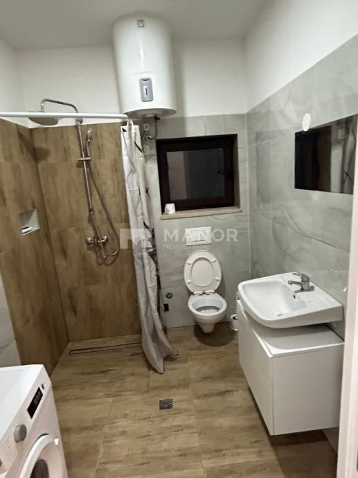 Kupaonica je moderna i praktična – tuš kabina, WC školjka, umivaonik s ormarićem, perilica rublja i boiler za toplu vodu.