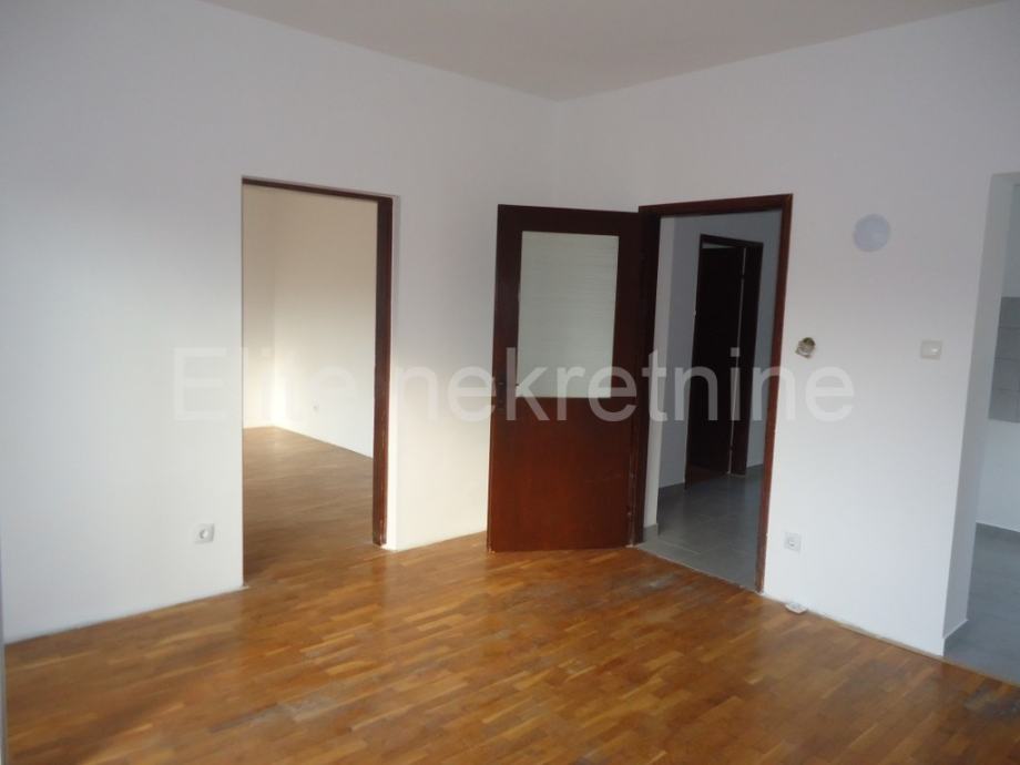 U prizemlju ( u naravi 1. kat ) obiteljske kuće iznajmljujemo komforan, svjetao i sunčan dvosoban stan s dnenvim boravkom. Stan se sastoji od dvije sobe, dnevnog boravka, hodnika, kuhinje, kupaone te balkona s terasom. Mirna i tiha lokacija.