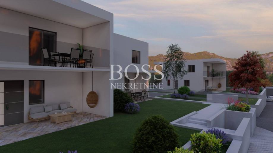 Kastav, odličan stan sa zasebnim ulazom i svojom okućnicom površine cca 100m2. Lijep raspored prostorija koji je prikazan na tlocrtu, a u suterenu je garaža sa spremištem 20m2. Podno grijanje na struju, dimnjak, klima, trokomorna PVC stolarija, termo fasada 8-10 cm, poroterm cigla, parlafon, vrlo kvalitetna ulazna vrata Inoterm. Mogućnost uređenja interijera do određene cijene koju odobrava investitor. Kupac ne plaća porez na promet nekretnina. Završetak radova krajem 2025. godine. Investitor odobrava dodatni popust na gotovinsko plaćanje. Lijepa i mirna pozicija, blizina svih sadržaja. Obavezno pogledati! Boss, kontakt: 091/379-1010 Dragan