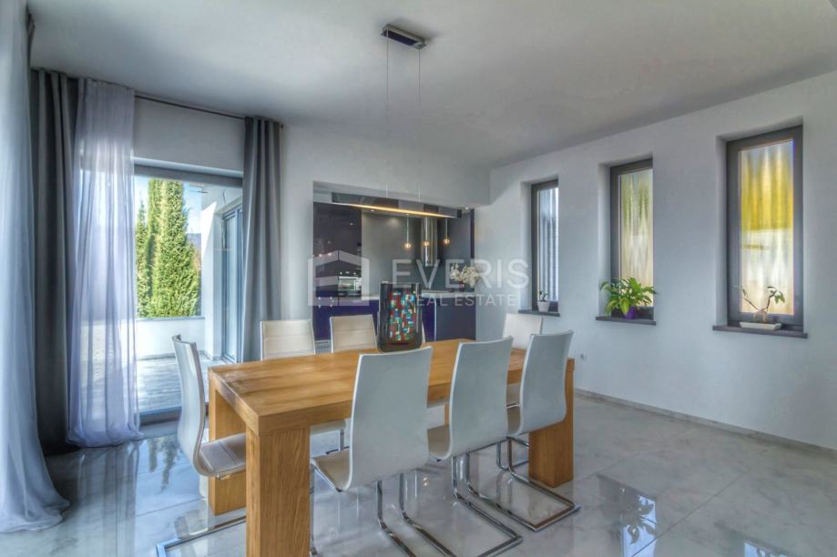 ▪ Prizemlje: stan ukupne površine 191,75 m2, a koji se sastoji od: ulaz (2,99 m2), hodnik (4,68 m2), garderoba (5,46 m2), toalet (3,64 m2), dnevni boravak (28,18 m2), blagovaona (20,10 m2), kuhinja (13,65 m2), izba (1,76 m2), hodnik (9,01 m2), tri spavaće sobe (41,08 m2), tri kupaone (20,15 m2), i terase (41,05 m2).
