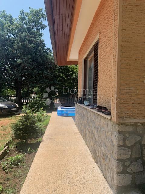 Velika uređena okućnica, sa popločanim parkirnim dijelom, i uređenim zelenilom.