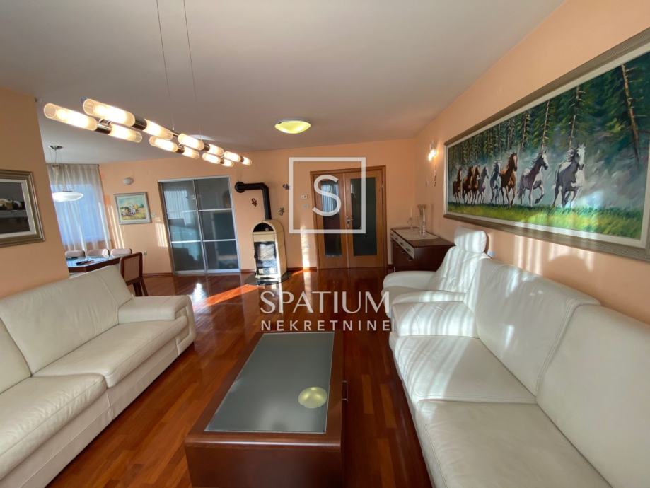 Sastoji se od prostranog dnevnog boravka, blagovaone, kuhinje s ostavom, tri spavaće sobe, kupaone, toaleta i prekrasnog balkona.