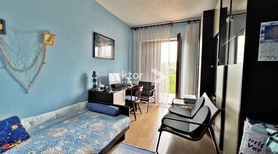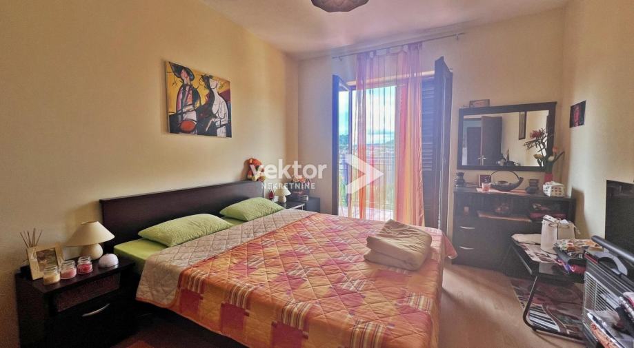 U naravi stan na 1.katu površine 85m2 koji se sastoji od dvije sobe, kuhinje sa dnevnim boravkom u open space konceptu, kupaonice, hodnika, špajze, terase, balkona, ulazne verande i tavana. Stan je kompletno namješten i tako se i prodaje.