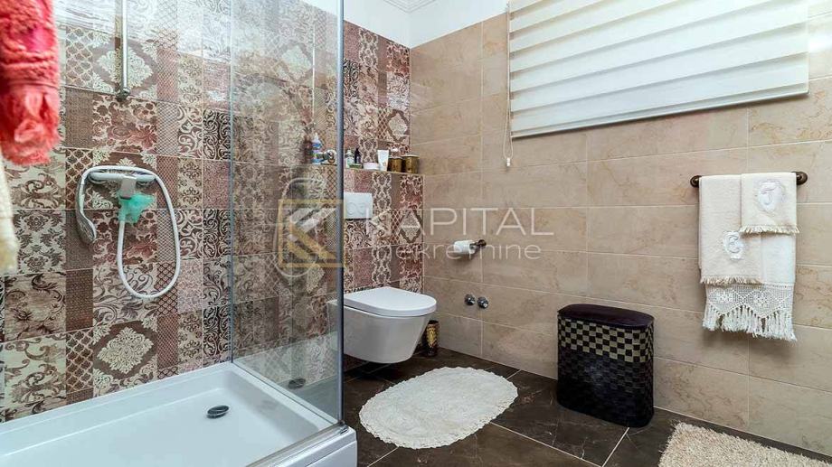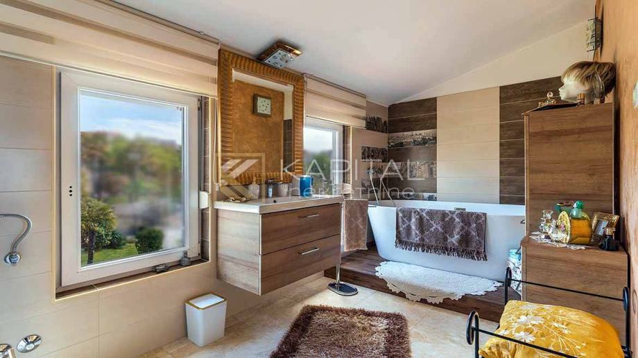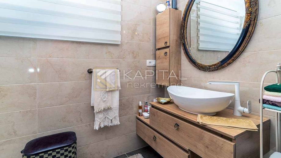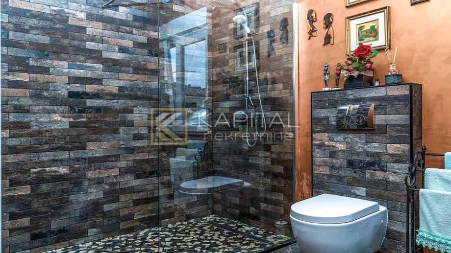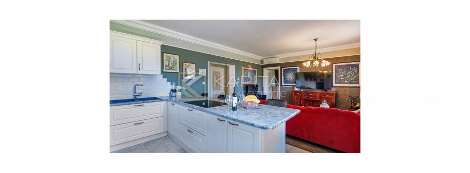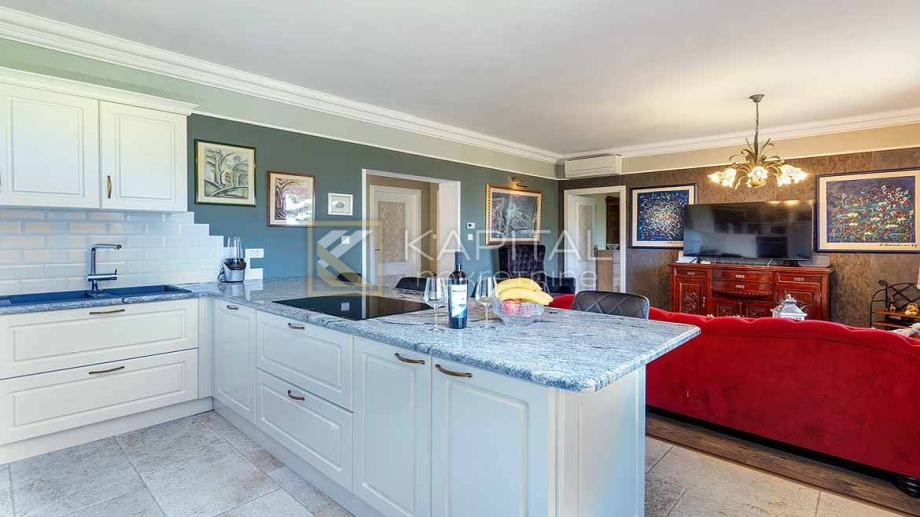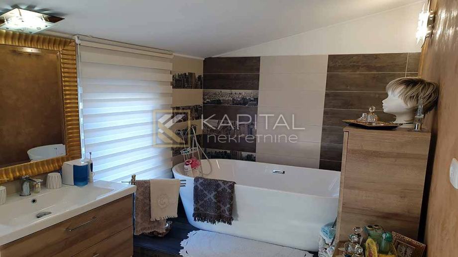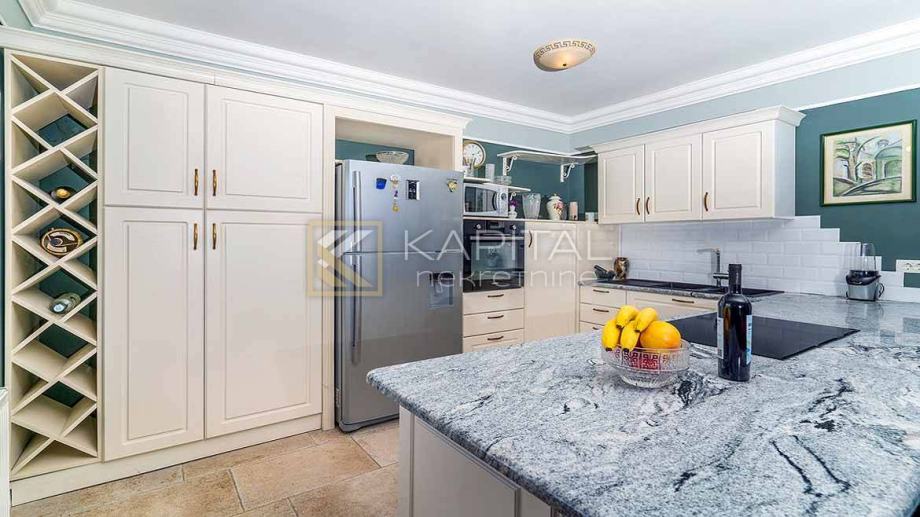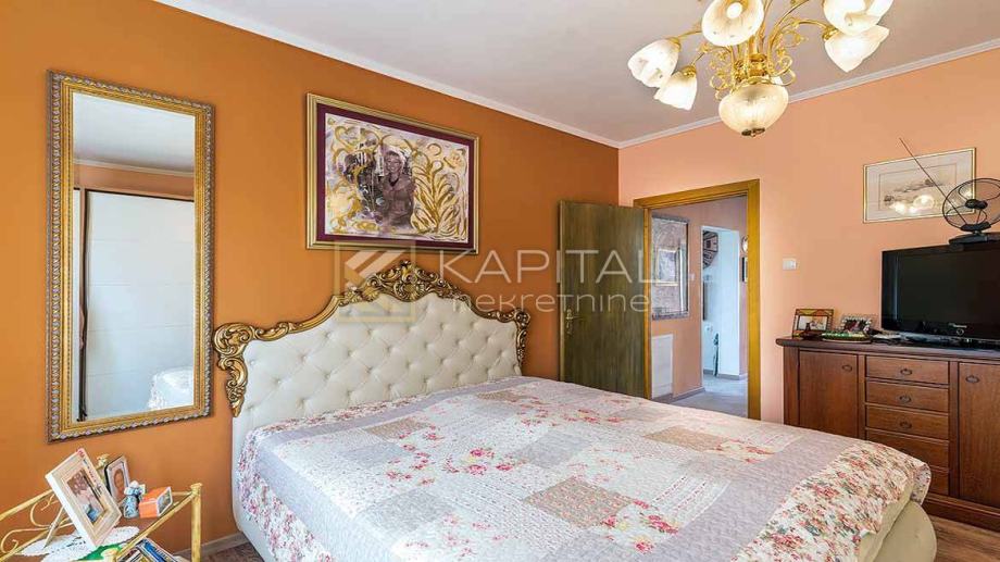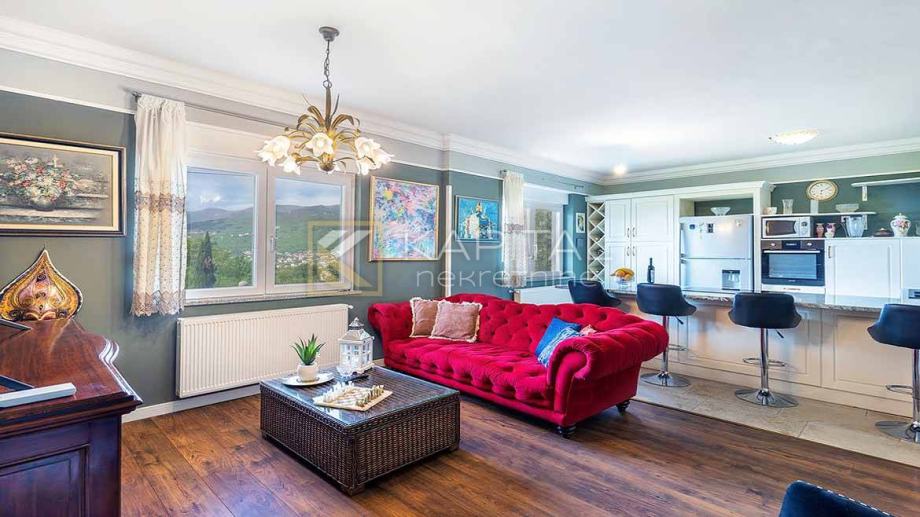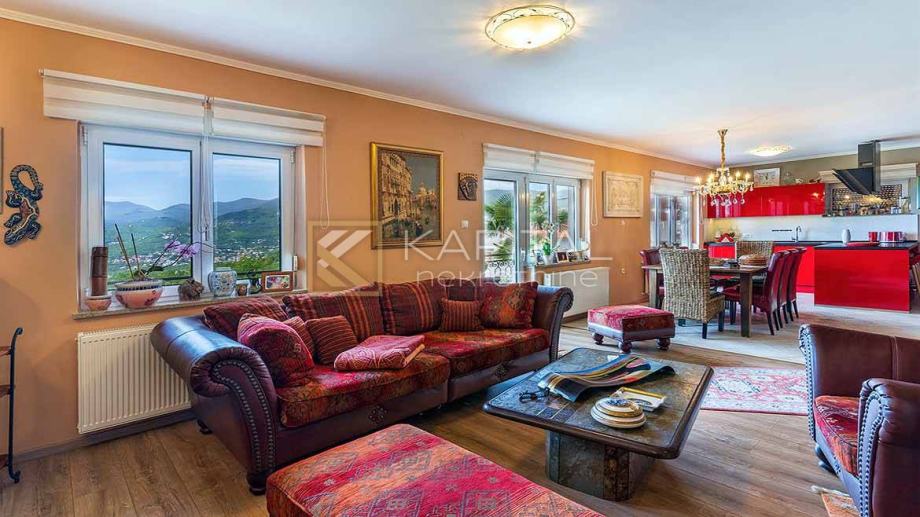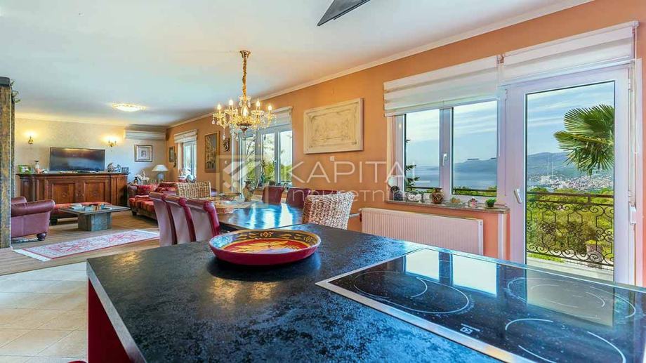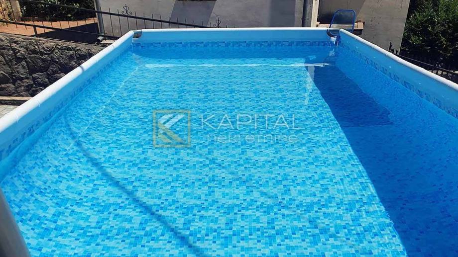 Adaptirana kuća na odličnoj lokaciji. Sastoji se od 2 stana. Jedan stan u prizemlju 2s+db (dobivena dozvola da se taj stan može proširiti u komforni 3s+db) te drugi dvoetažni 2s+db na 1 katu (jedna soba s kupaonom i terasom je u mansardnom dijelu). Iza kuće je dvojna garaža od čega je jedna uređena kao p.p. kancelarija a u suterenskom dijelu tog objekta je velika konoba u kojoj je između ostalog smještena kotlovnica za cijelu kuću. Centralno etažno grijanje.Izuzetan pogled na Kvarnerski zaljev. Predivna okućnica s 2 kolna ulaza i parking za 5-6 automobila. Postavljen montažni bazen. Postoje svi uvjeti za uspješan turistički najam. Moguće je razgovarati o uvjetima prodaje ako su rokovi i način isplate povoljni. Za sve informacije nazovite 098/501-044